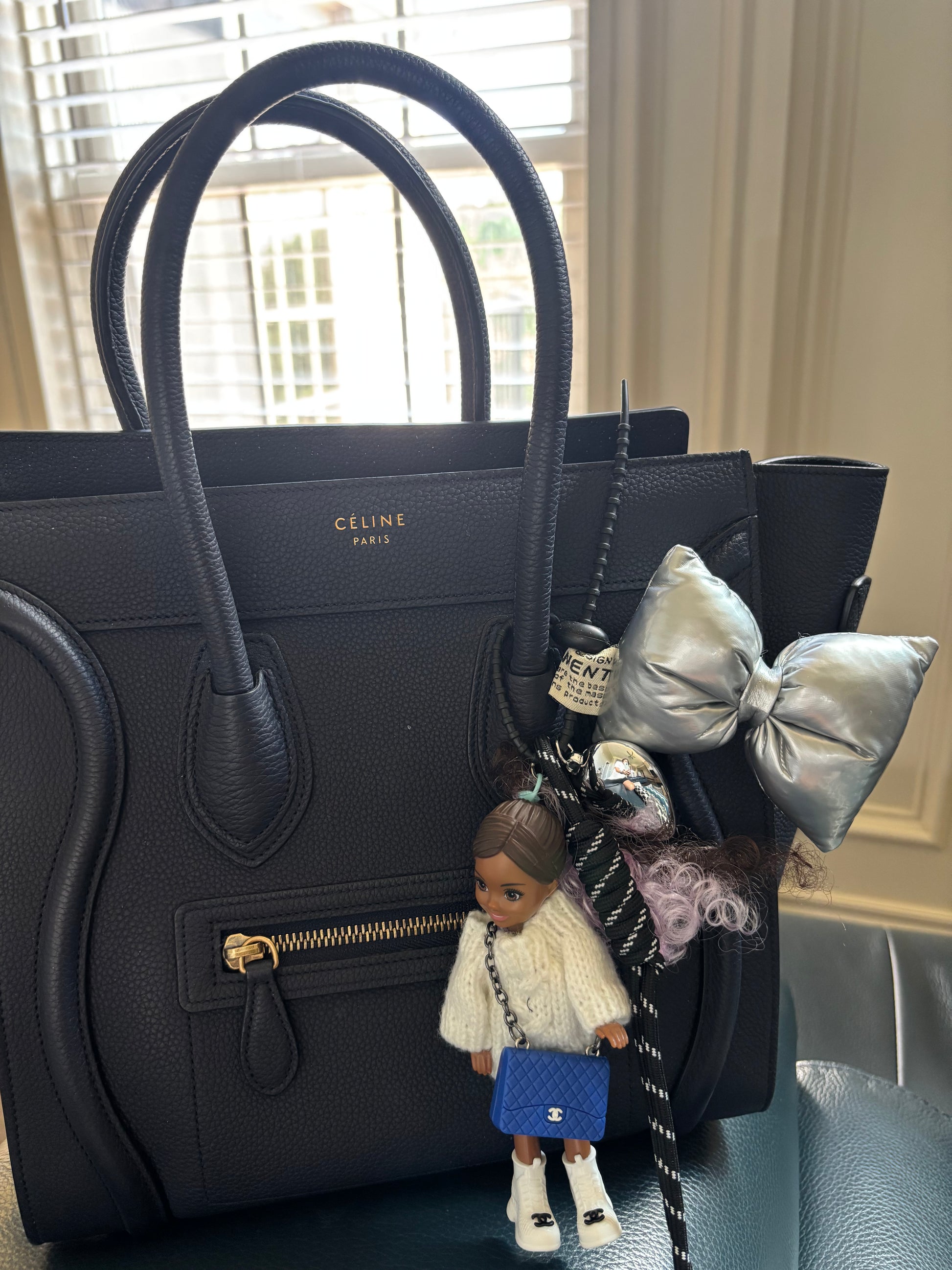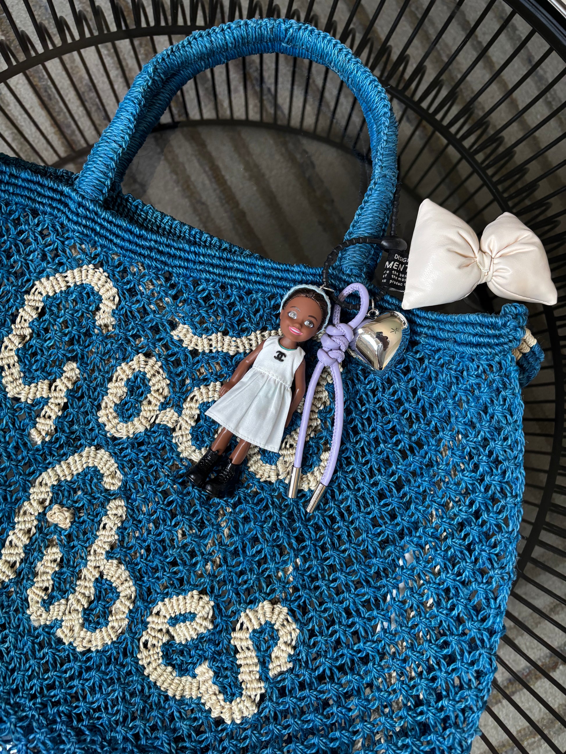 Add a playful twist to your luxury bags with this handcrafted mini doll charm!